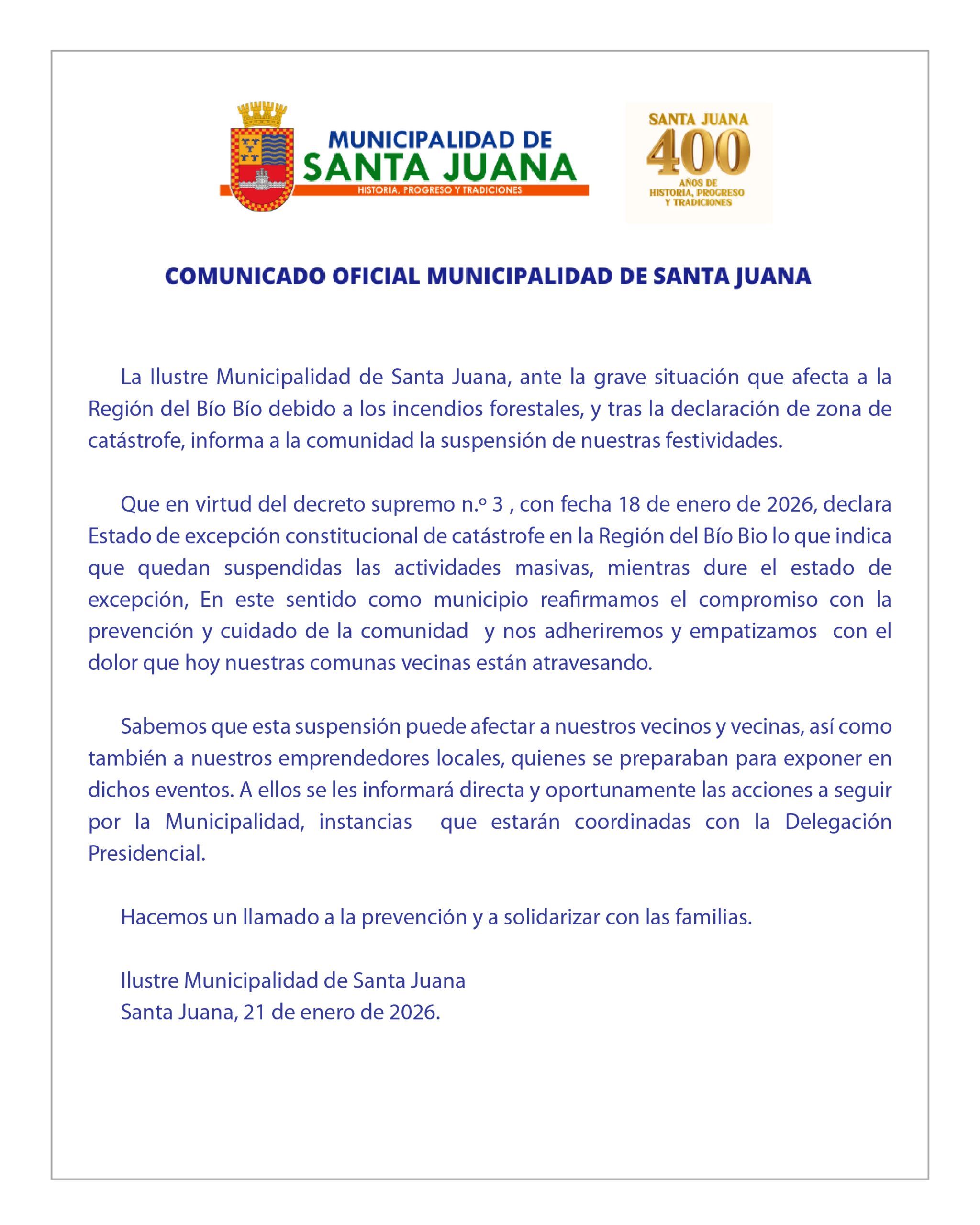 COMUNICADO OFICIAL MUNICIPALIDAD DE SANTA JUANA