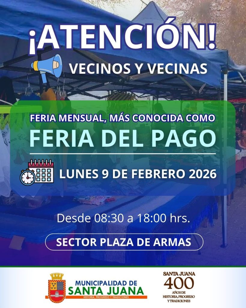 #SantaJuana #FeriaDelPago #FeriaMensual #ComercioLocal #PlazaDeArmas #ApoyoAlEmprendedor #CampoALaCiudad #SantaJuana20261 día